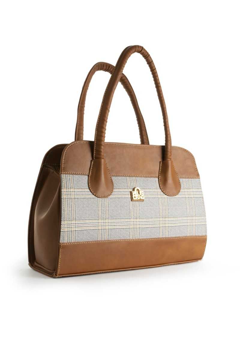 Lucia Tartan Bag (Light Brown and Grey)